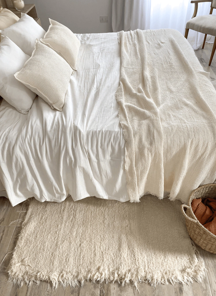 Elegí la Alfombra Bucarest y transformá tu dormitorio en un refugio de confort y estilo con un toque artesanal único.