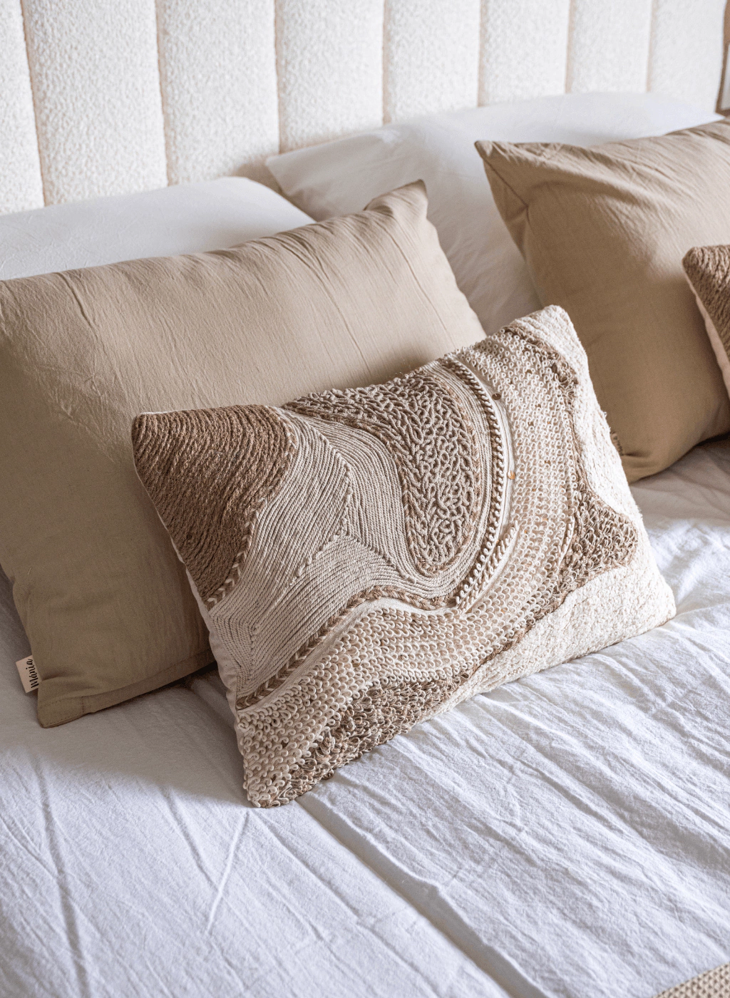 Traé a tu hogar la esencia de la India con este almohadón importado, diseñado con yute y con texturas que enamoran a primera vista. Su tamaño ideal de 60x40 cm lo hace perfecto para complementar cualquier espacio. Completá el set con el almohadón India 50x50 del mismo estilo y transformá tu decoración con un toque auténtico y sofisticado. ¡Un detalle único para ambientes con personalidad!