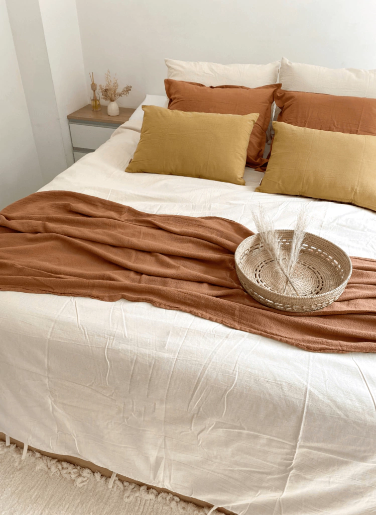 Los géneros están teñidos y prelavados, por lo que los tonos pueden variar ligeramente según la partida y pantalla. Recomendamos lavar la funda en lavarropas con agua fría para conservarla en óptimas condiciones. Además, no requieren planchado, aunque si lo deseás, podés hacerlo sin problemas.