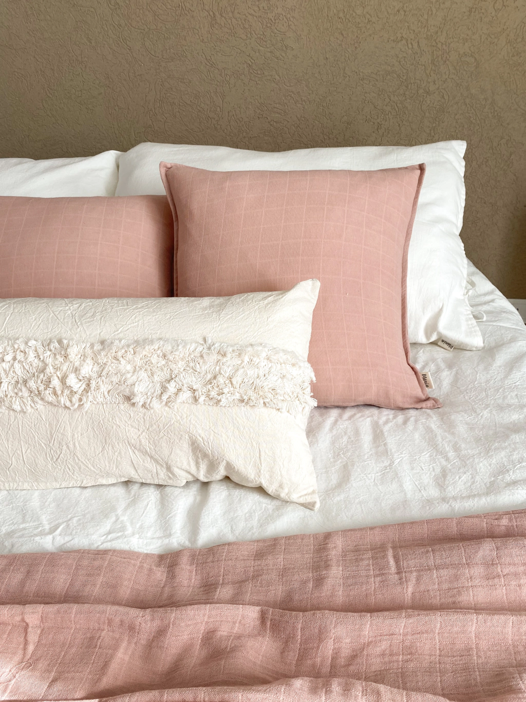 Funda 100% de algodón confeccionada en gasa pañalera y tussor en el reverso.