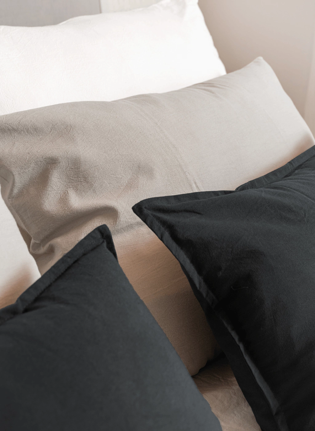 Los géneros utilizados están teñidos y prelavados, asegurando colores duraderos aunque pueden variar según la partida y la pantalla. Las fundas son aptas para lavado en lavarropas con agua fría y no requieren planchado, aunque se puede realizar si se desea.