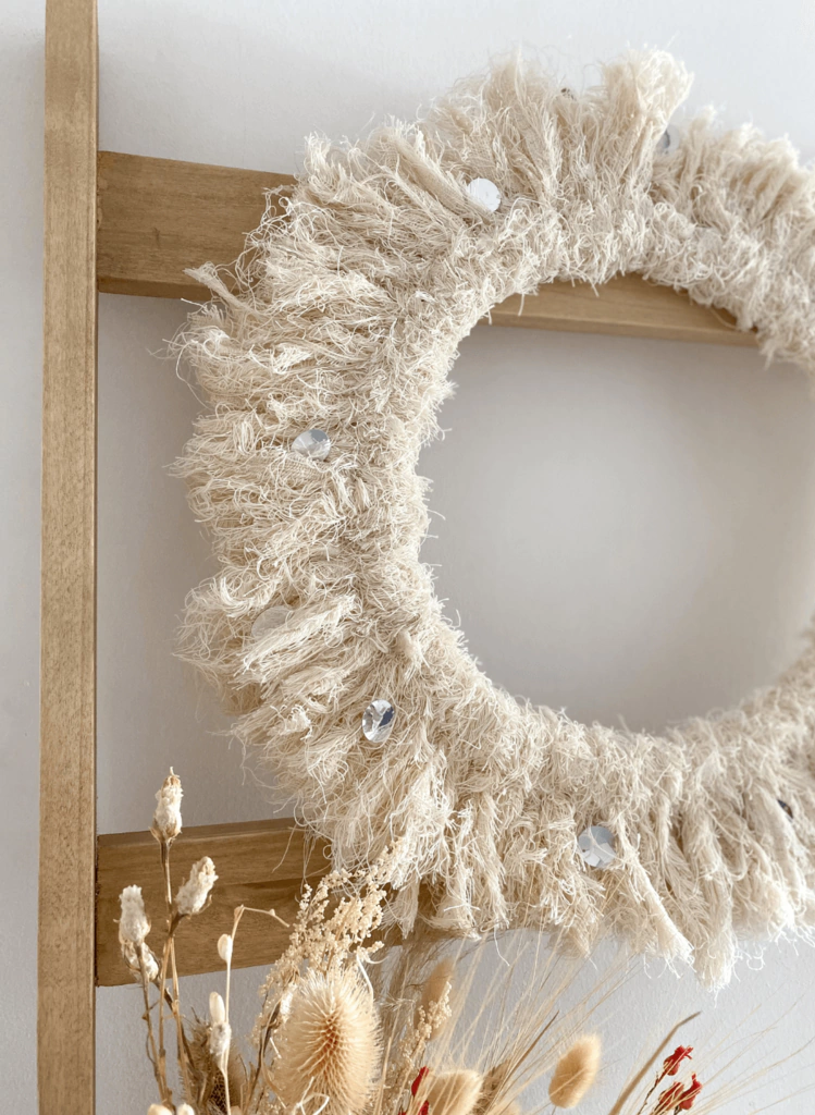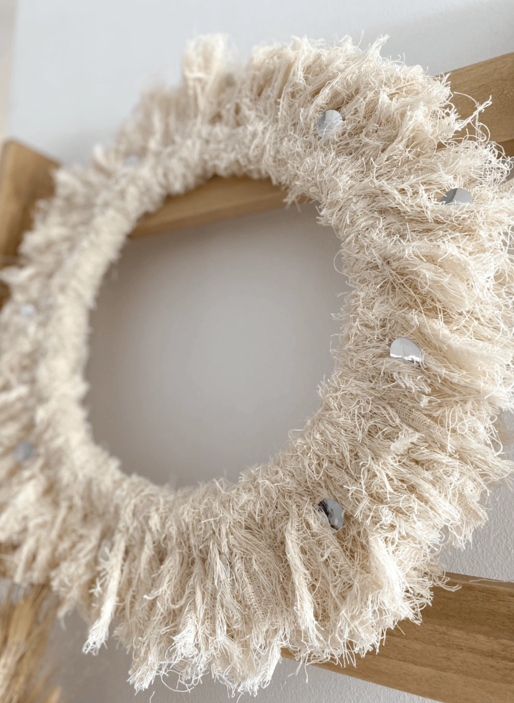 Corona navideña de 45cm de diámetro con lentejuelas plateadas, ideal para colgar en la puerta de la entrada de tu casa!