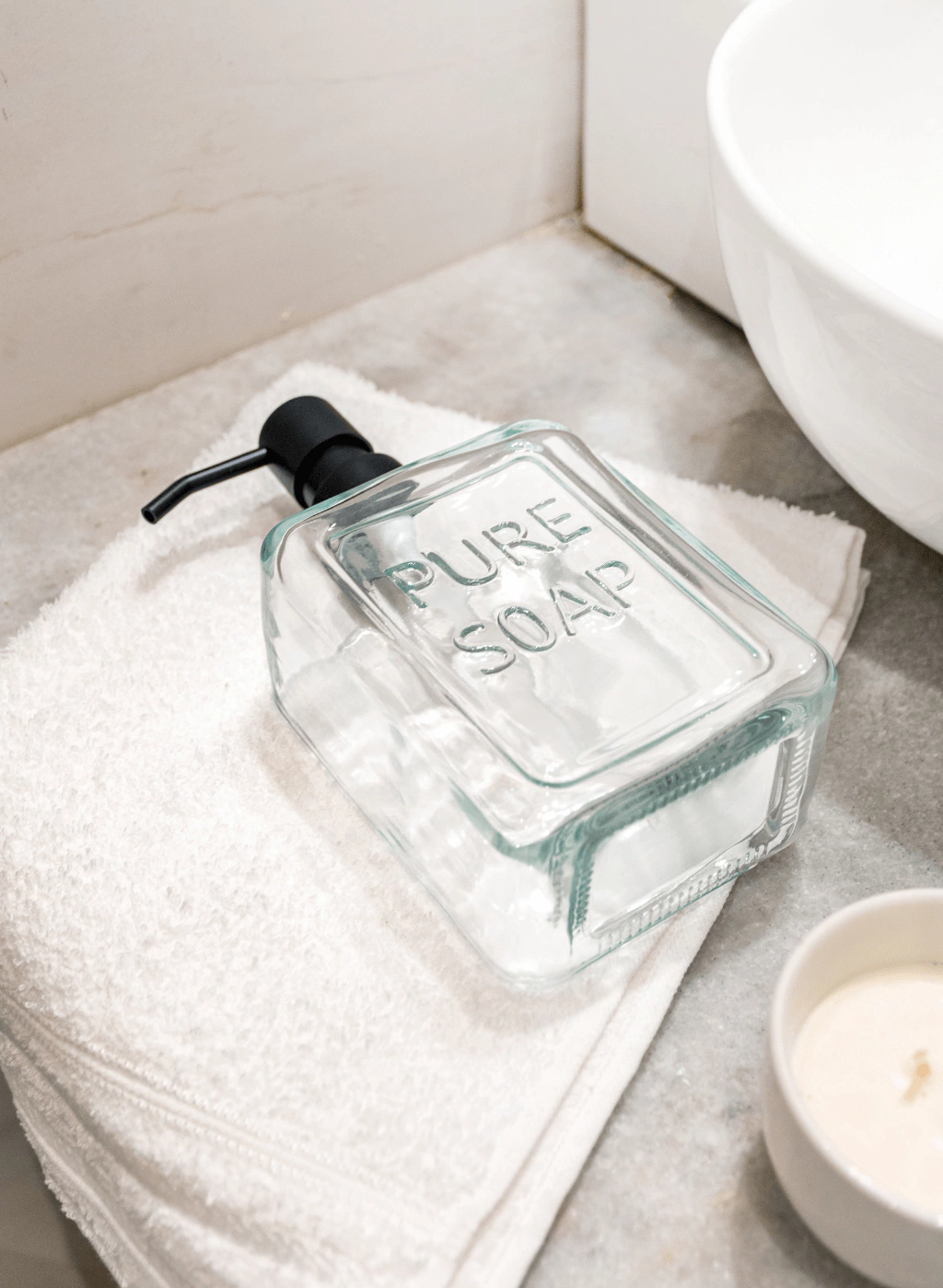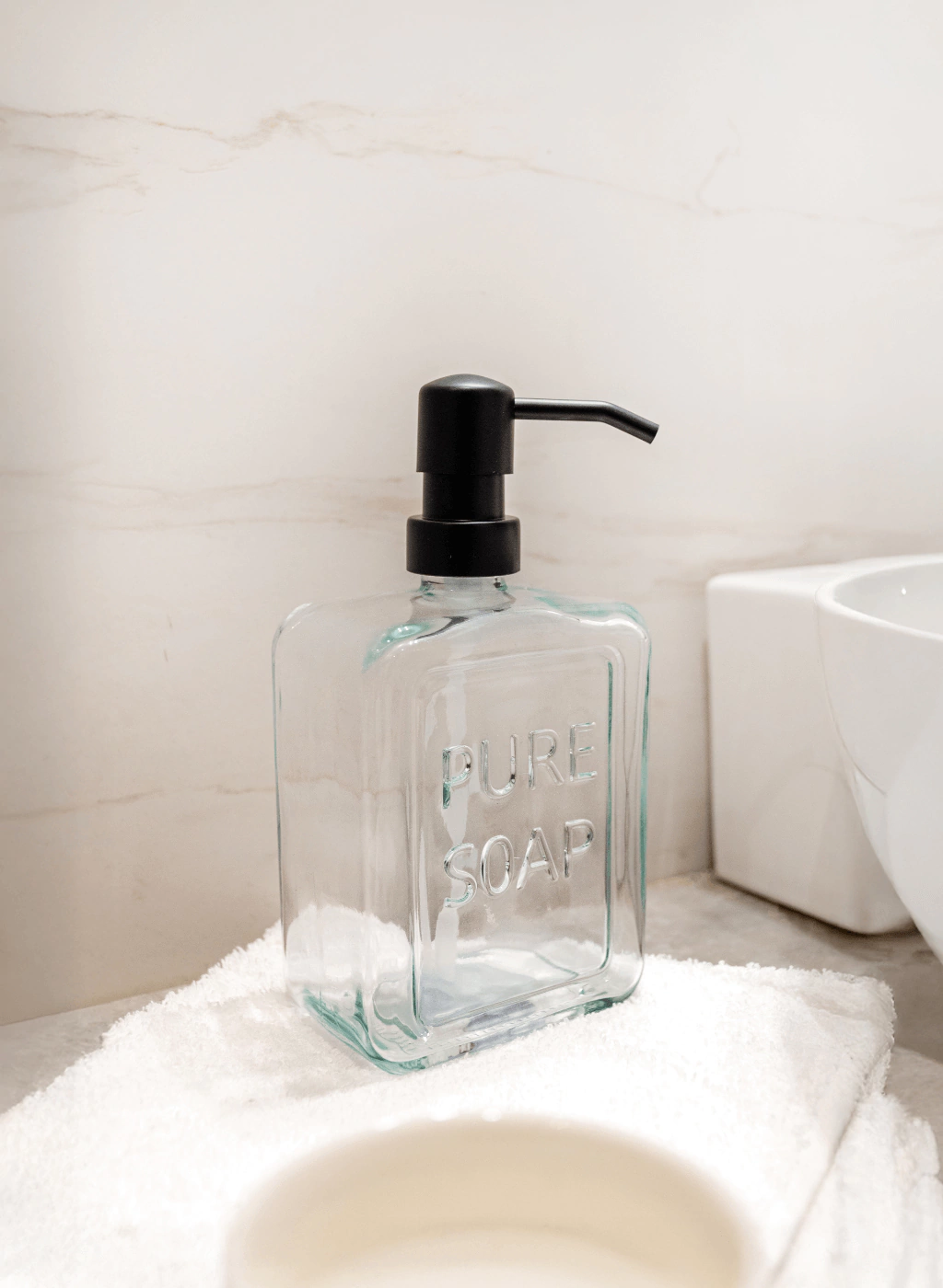 Elegí elegancia y funcionalidad para tu baño con este dispenser de vidrio para jabón de manos. Su diseño sofisticado incluye una válvula negra mate que aporta un toque moderno y minimalista, ideal para cualquier estilo de decoración.