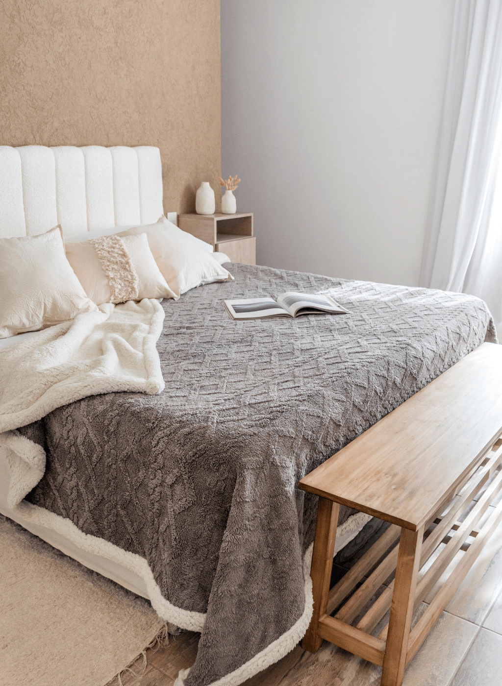 Disponible en dos tamaños ideales para cualquier espacio: 240x240 cm (para camas de dos plazas y dos plazas 1/2) y 280x240 cm (para camas de 180 y 200), además de una práctica versión manta de 200x100 cm para acompañarte donde quieras. Su tejido super abrigado hace que sea la opción preferida para las noches más frías, manteniéndote cálido sin perder estilo.