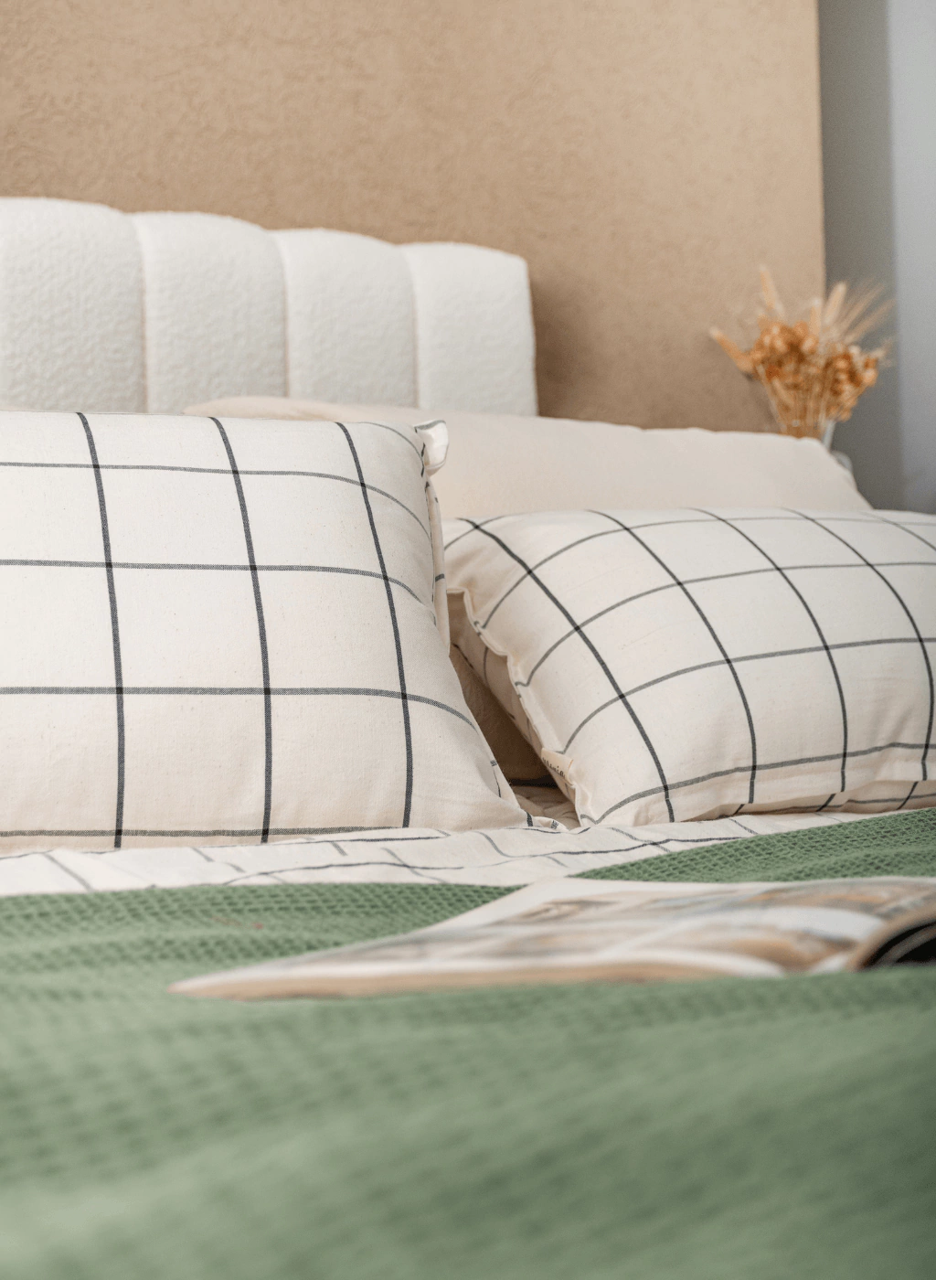 Funda desmontable y lavable, con cierre reforzado. Hecha en tusor cuadriculado 100% algodón.
