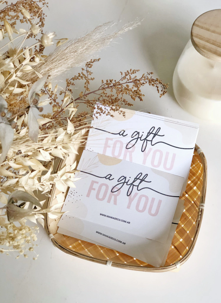 Regala algo distinto y dale la libertad a la persona que recibe de elegir a su gusto. Cada gift card se entrega con su respectivo sobre y caja kraft decorada.