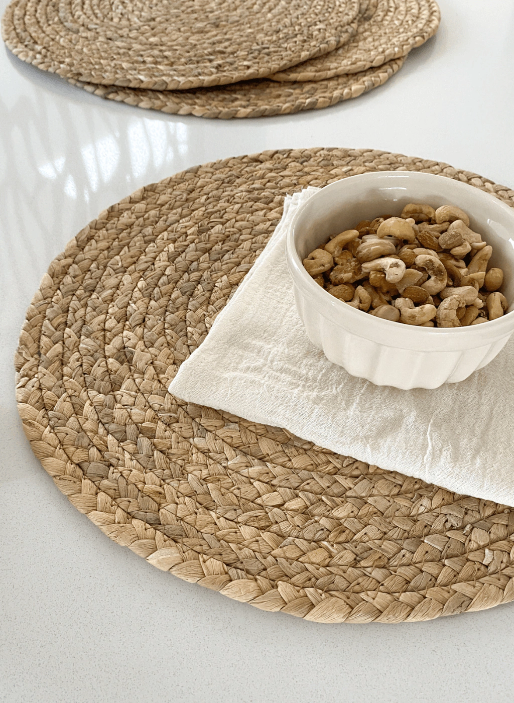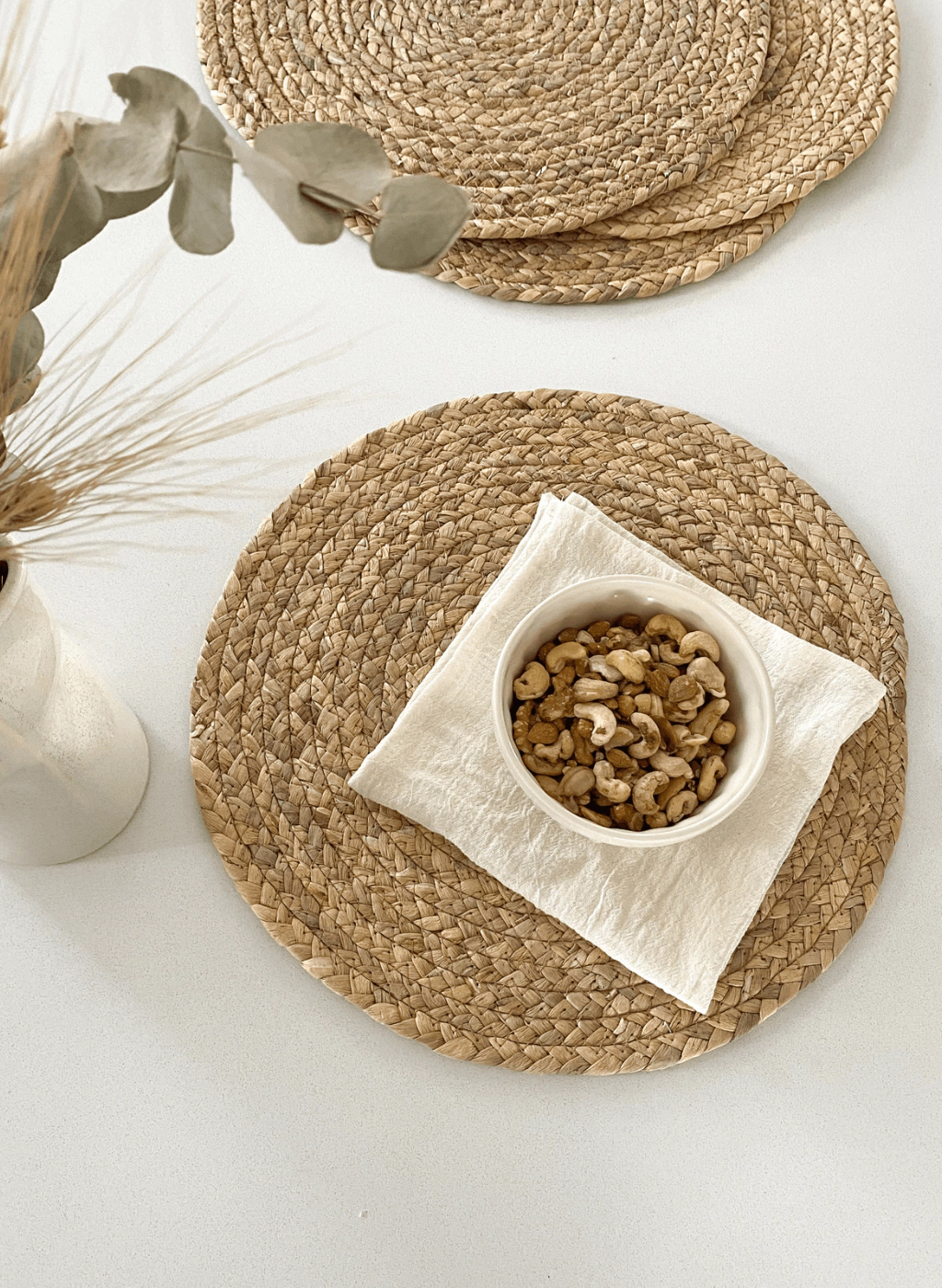 Individual importado de fibras naturales, idelaes para dar calidez a tu mesa como plato de sitio o como centro de mesa.