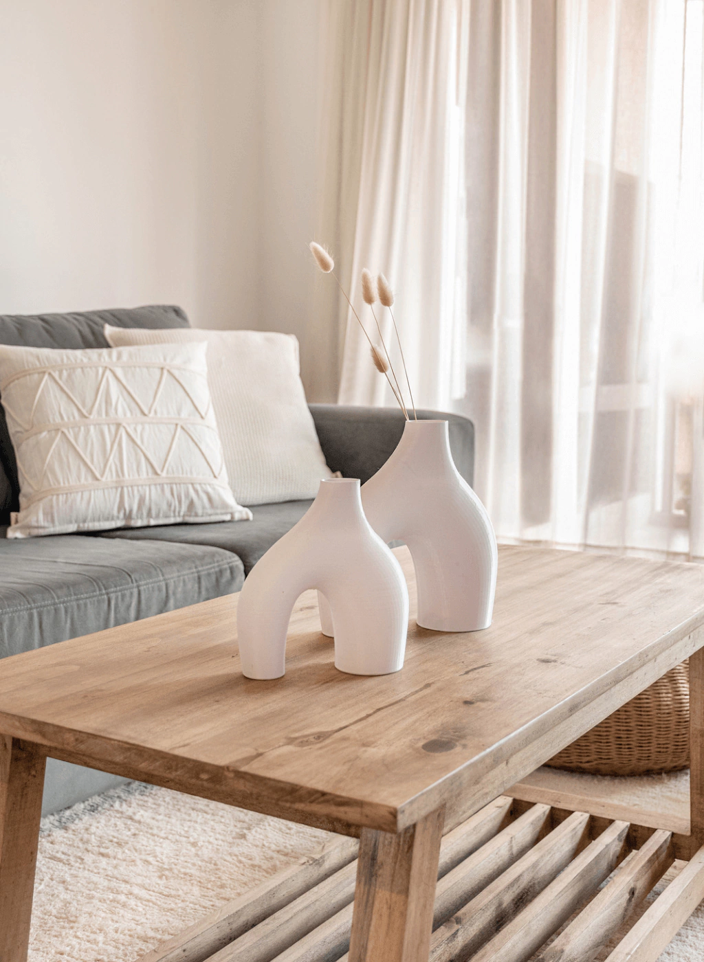 Jarrones decorativos elaborados en material PLA impreso en 3D con terminación mate.