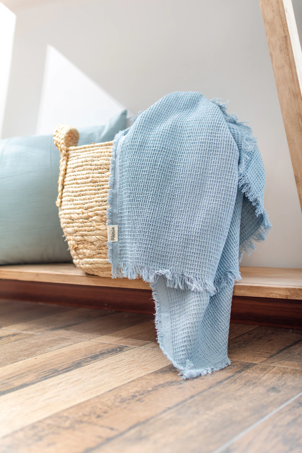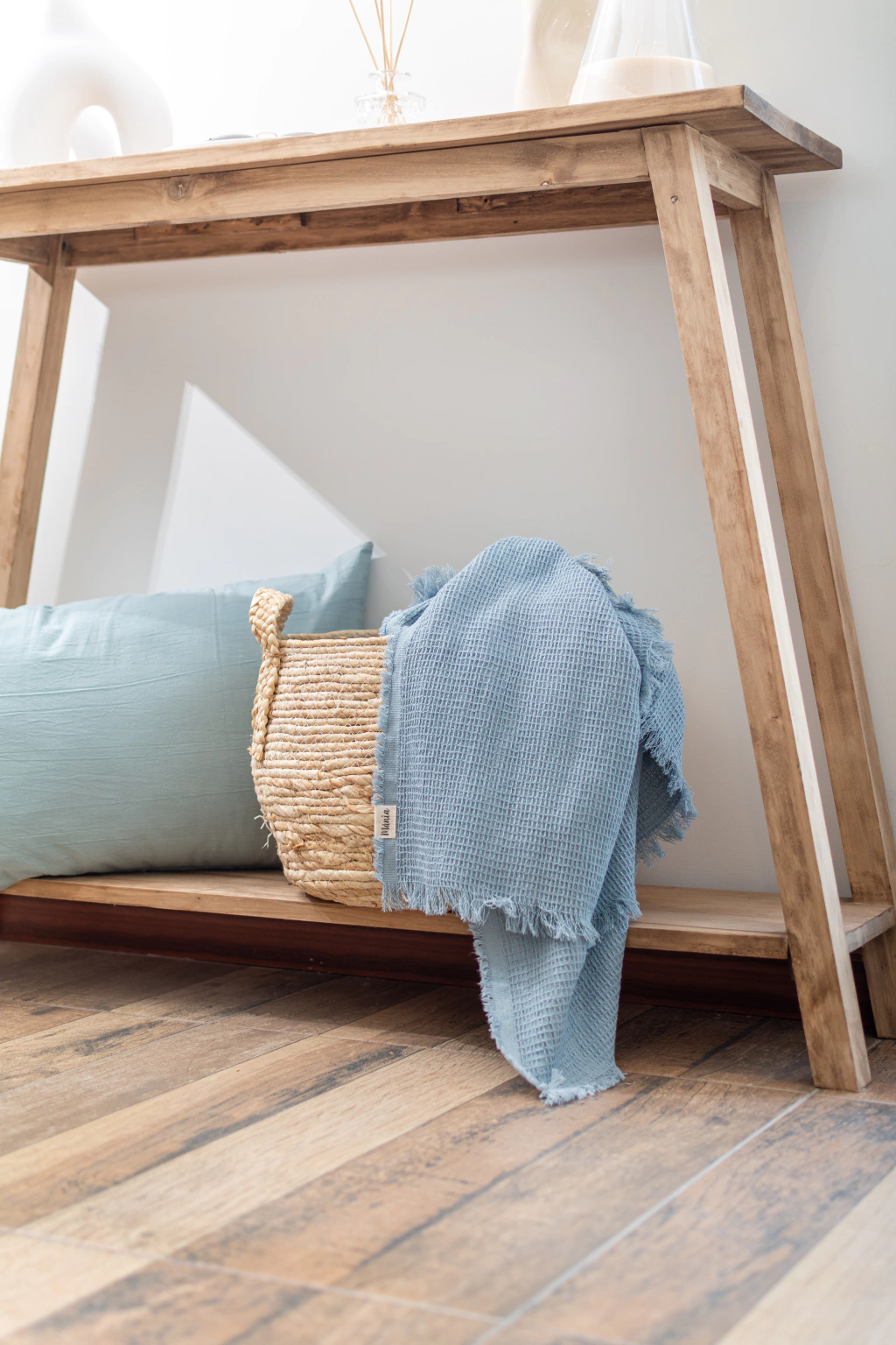 Hecha en tela nido 100% de algodón, con terminación desflecada.