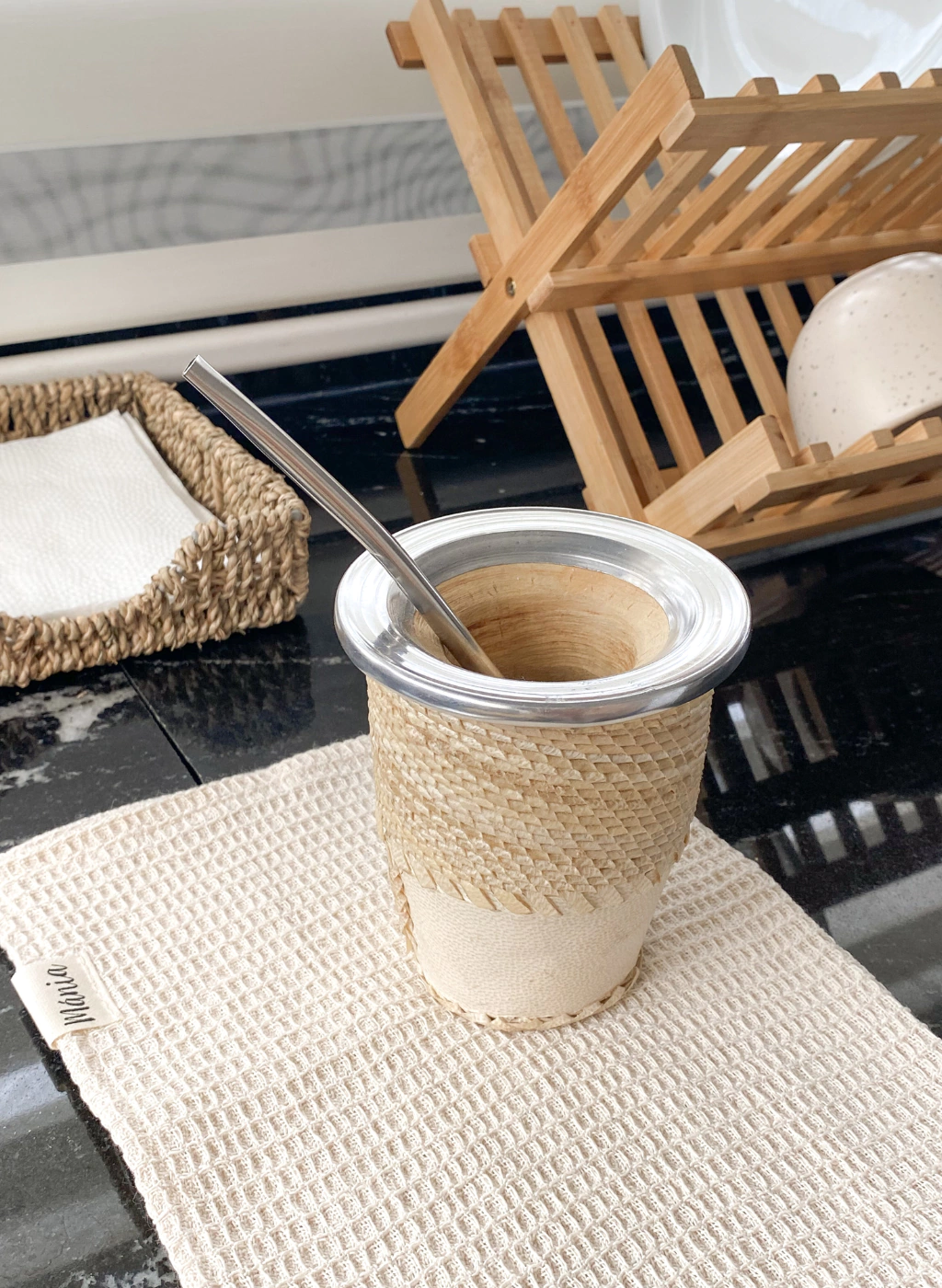 Mate trenzado de cuero ecologico con interior de calabaza.