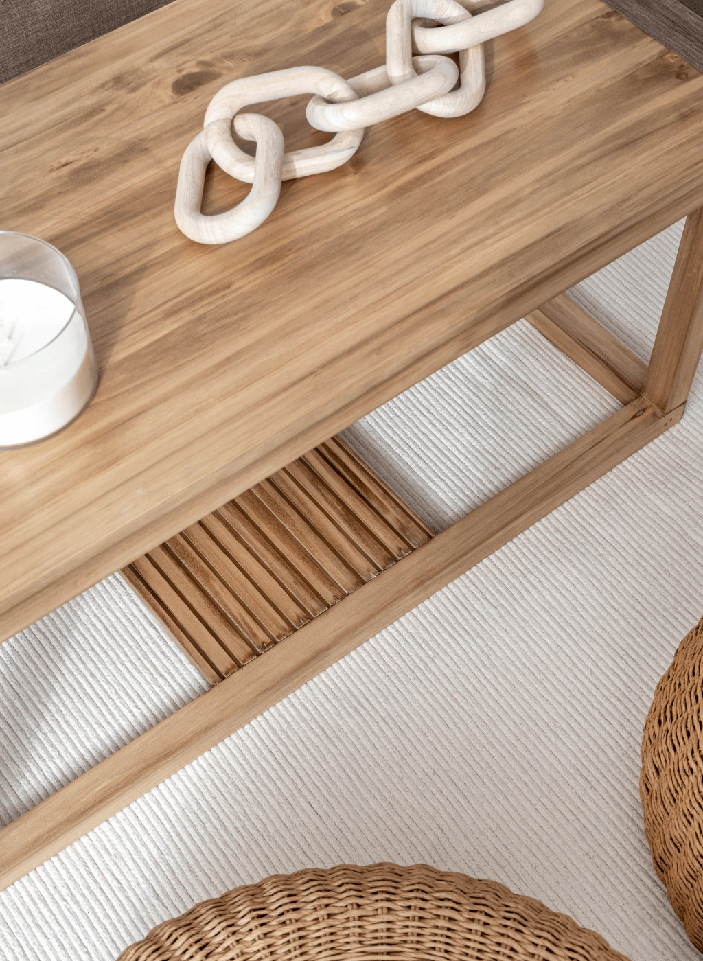 Mesa ratona fabricada con álamo macizo de alta calidad, con lustre simil petiribi que realza la belleza natural de la madera.