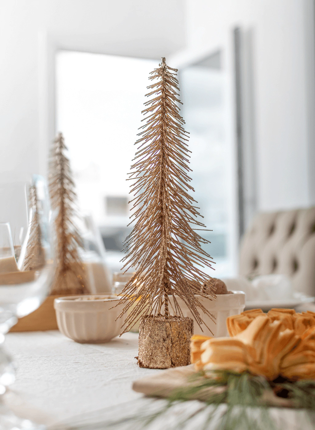 Suma brillos a tu hogar o a tu mesa navidena con el arbol shine en color oro. Encontralo también en color plata. El set corresponde a dos unidades.