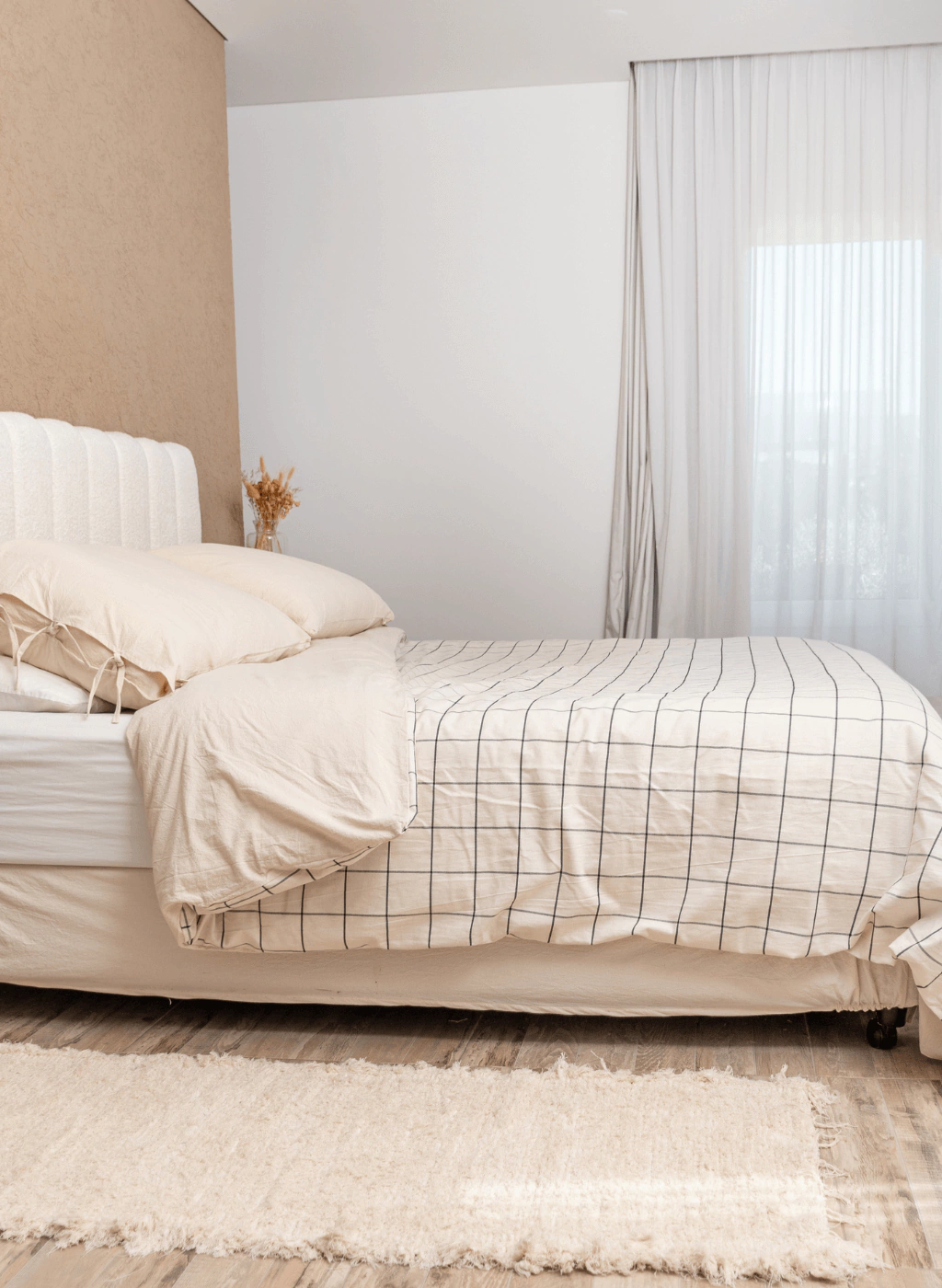 Descubrí la elegancia y funcionalidad de nuestra Funda de Edredón reversible, confeccionada en tusor de algodón cuadriculado de un lado y del dorso tusor natural. Dos géneros suaves, resistentes y 100% natural. El set incluye sus fundas de almohadones a tono! En la medida Twin 1 Funda y las otras medidas 2 Fundas de Almohada 70x50 color natural.
