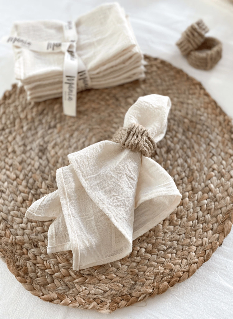 Set x4 o Set x6 servilletas confeccionadas en gasa de algodón, ideales para usar con nuestros servilleteros de yute.