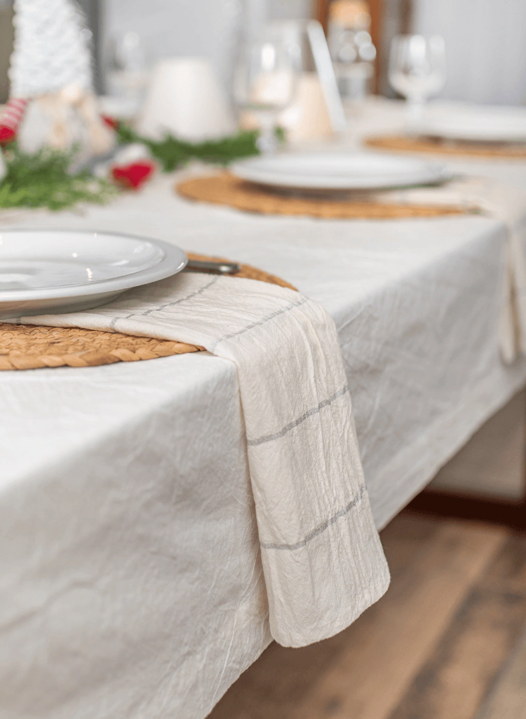 Hace que tu mesa navideña deslumbre con nuestras Servilletas Silver. Inspiradas en el estilo nórdico, combinan un delicado color natural con sutiles líneas plateadas, aportando elegancia y espíritu festivo.