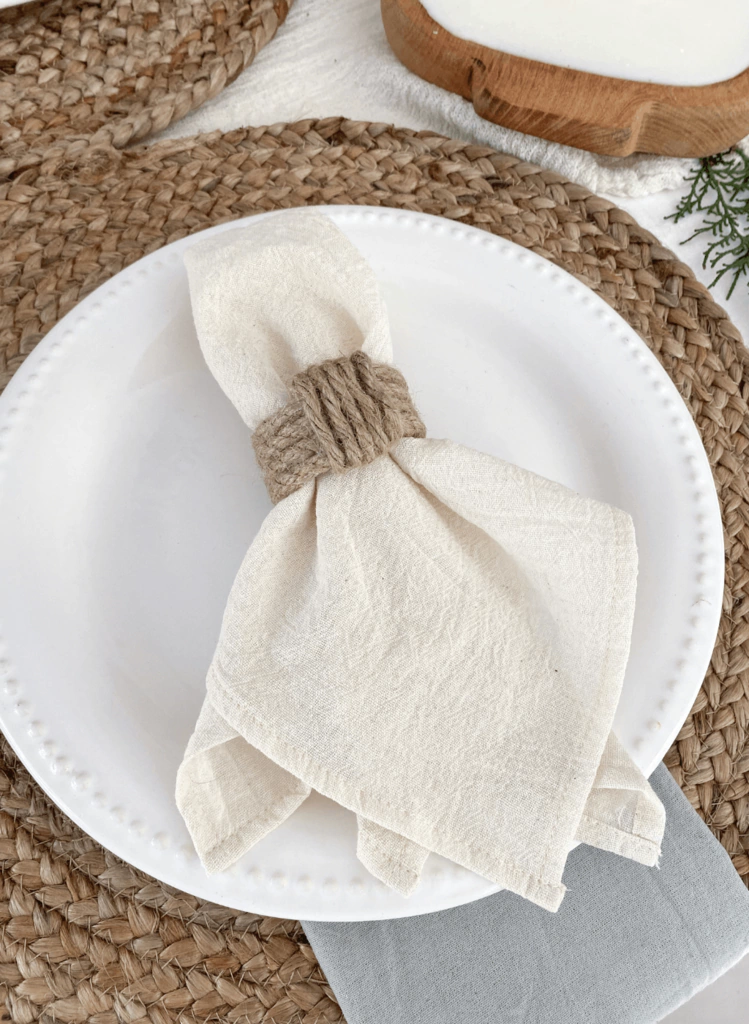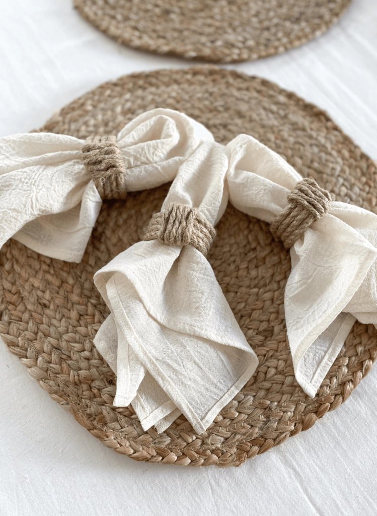 Pack x4 o Pack x6 servilleteros hechos en soga de yute, ideal para usar con nuestras servilletas de gasa.